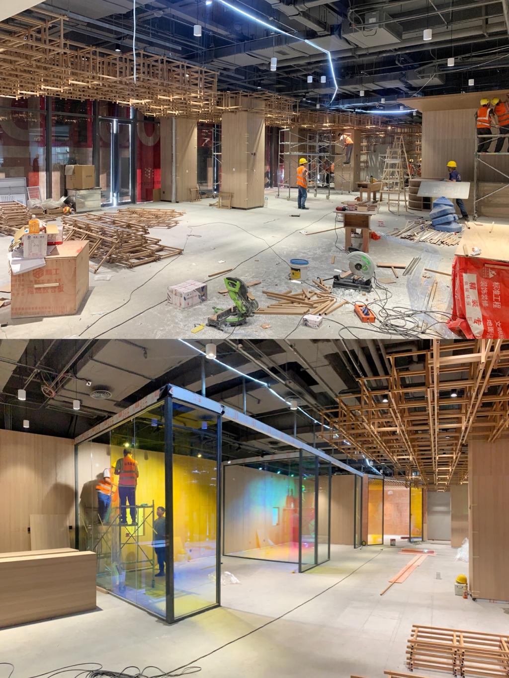 工作团队围绕“山东手造”品牌含义与精神,发挥学校强大师资力量、学科专业优势、专家智库与校企资源,设计师品牌店和创意研发中心设共形成了3套总方案,含20-30种子方案。9月以来,学校工作团队紧锣密鼓地组织开展“工美手造”设计师品牌店与“山东手造”创意研发中心现场装修调度工作,目前,品牌店与研发中心的整体硬装已基本完成。从四处扬尘、堆满建筑材料的工地现场,到焕然一新、干净整洁的店面,离不开学校工作团队的团结一致、辛勤劳动的敬业精神。“工美手造”设计师品牌店即将进入展品布局陈列阶段,让我们翘首以待吧!
