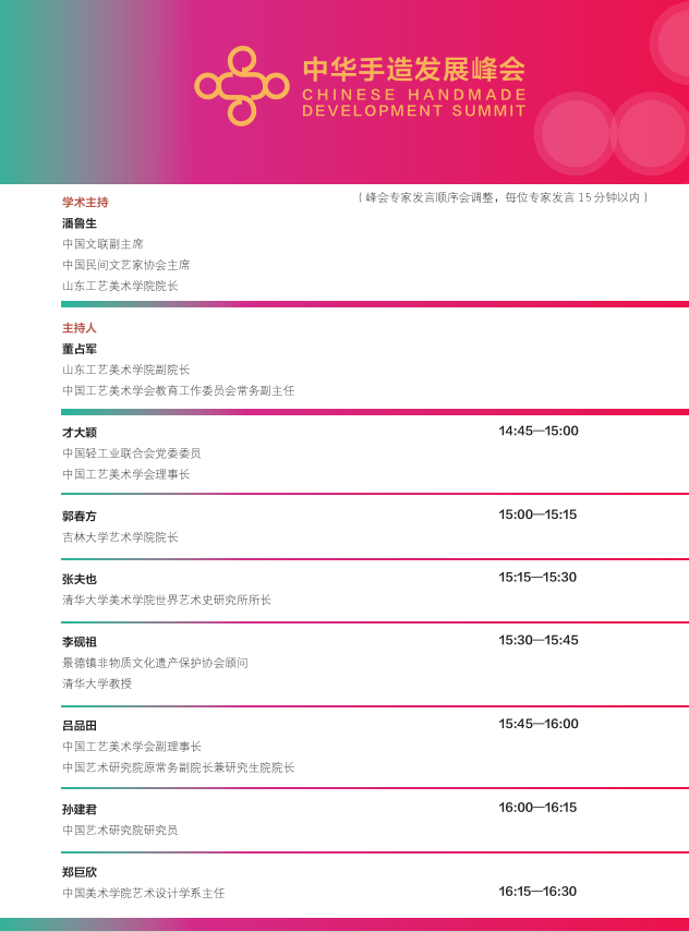 本次峰会是贯彻落实习近平总书记关于“推动中华优秀传统文化创造性转化、创新性发展”的重要指示精神,助力打造“山东手造”区域公用品牌建设的有力举措,将通过学术探讨积极展现、挖掘、探索传统手工艺赋能产业的发展之路,进一步扩大“山东手造”的品牌美誉度和影响力。