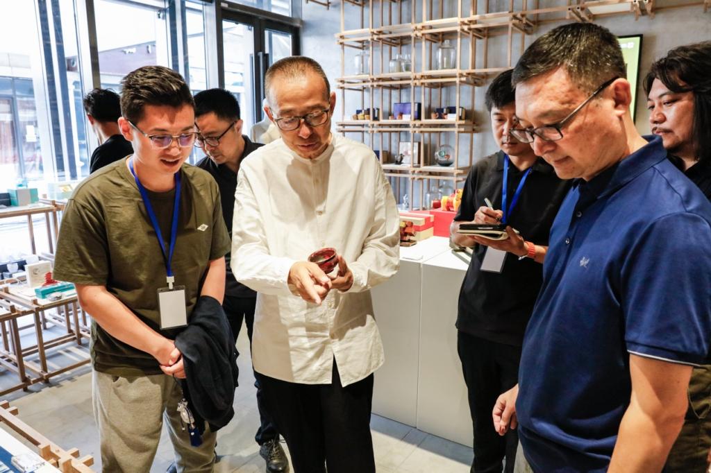 潘鲁生现场听取了“工美手造”设计师品牌店与“山东手造”创意研发中心的有关情况汇报,他对“工美手造”设计师品牌店与“山东手造”创意研发中心项目专班工作人员积极打造“展示+售卖+体验+研学”四位一体的“山东手造”成果给予充分肯定。