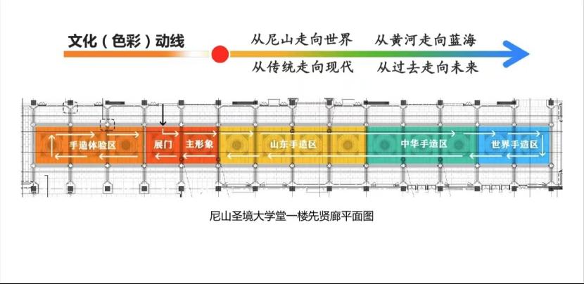 主展区位于尼山圣境大学堂一楼先贤廊,展览面积约730平方米。展览名称为“‘中华手造﹒山东手造’精品展”,分为“山东手造”“中华手造”“世界手造”“手造体验”四个区域。