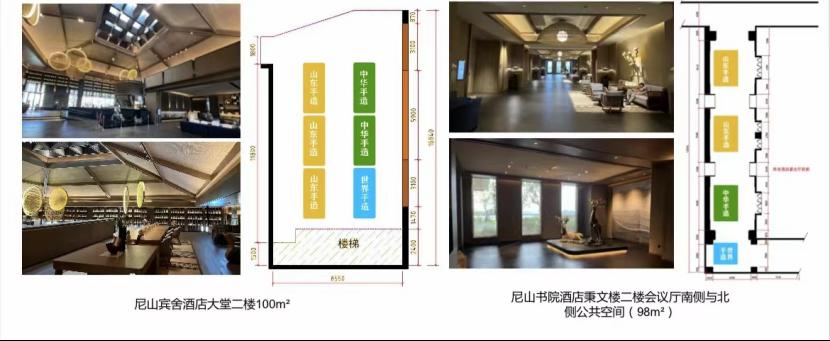 尼山书院酒店分展区位于秉文楼一楼南侧公共空间(35平方米),主要面向与会内宾展示销售“山东手造”“世界手造”产品。
