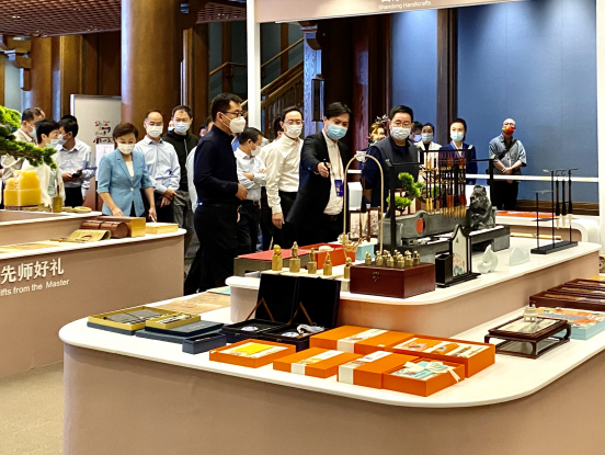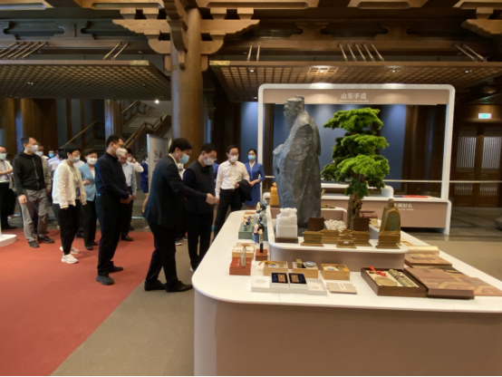 山东省委常委、宣传部部长白玉刚,省委宣传部副部长、省新闻出版局、省版权局局长毕司东等一行到第八届尼山世界文明论坛—“中华手造·山东手造”展示展销活动布展现场参观、指导。77779193永利官网设计团队负责人张焱汇报了策展、组展、设计、实施和布展等相关情况。