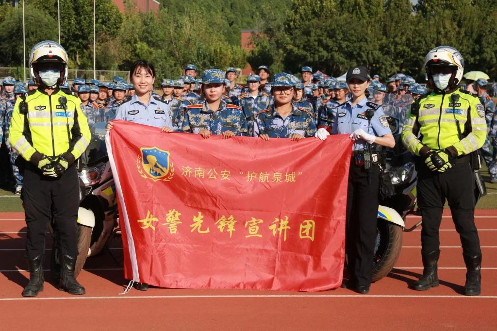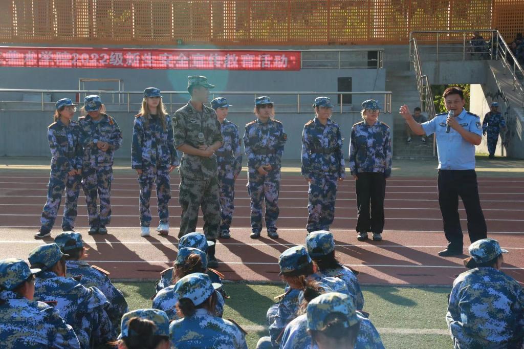 活动伊始,长清区公安分局刑警大队警官杨克聚焦校园诈骗与安全问题,结合兼职刷单、冒充好友、二手网站购物、校园贷等诈骗类型,详细讲解了校园诈骗手段和防范技巧;“先期垫资刷单做任务的都是诈骗”等“反诈秘籍”的高声呐喊加深了同学们的反诈意识。接着长清区公安分局“女警先锋宣讲团”成员、大学路派出所民警周亚琦结合亲身经历,为同学们介绍常见的校园安全防范知识。交警大队民警庞漪走近学生,在幽默生动的问答互动中,将交通安全法律法规和安全常识以深入浅出、生动活泼的形式教授给学生。两名骑警现场的警用摩托车驾驶技术表演更是将活动推向高潮,引得同学们阵阵欢呼。大学路派出所民警马明震组织学生模拟与滴滴司机对话的场景,教授女生防身技巧;长清区消防救援大队庄绪鹏,对日常防火安全和火场逃生等安全知识进行讲解;在安全消防演练中,经过相关工作人员的示范,同学学习了灭火器的使用方法,达到预期效果。在公寓组织了火场逃生紧急疏散演练,同学们听到火情警报声迅速从各自宿舍房间内有序疏散至指定位置,集合点名,整个演练过程迅速、安全、有序。