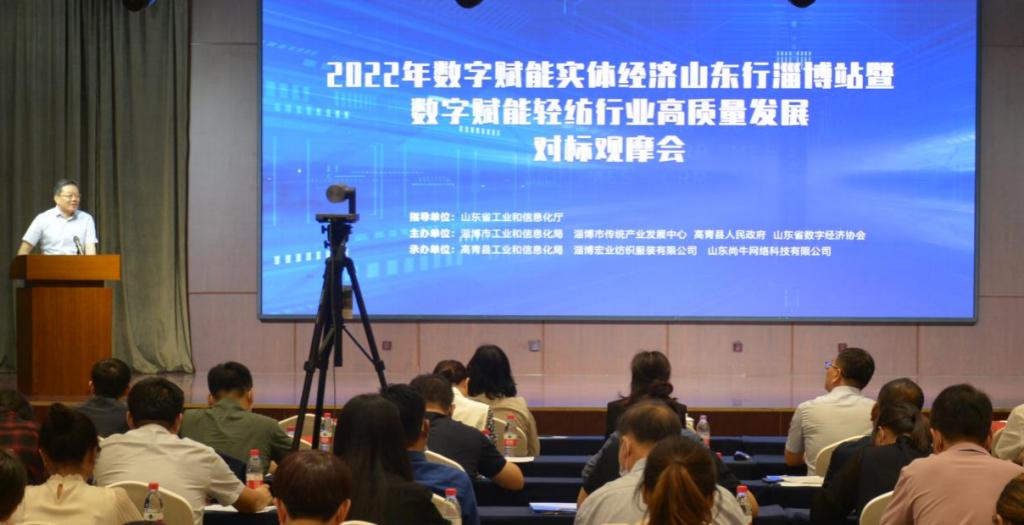 9月28日,由山东省工业和信息化厅指导,淄博市工业和信息化局、淄博市传统产业发展中心、高青县人民政府、山东省数字经济协会主办,高青县工业和信息化局、淄博宏业纺织服装有限公司、山东尚牛网络科技有限公司承办的山东省2022年数字赋能实体经济暨数字赋能轻纺行业高质量发展对标观摩会在淄博市高青县召开。永利官网党委副书记苗登宇受邀出席活动。