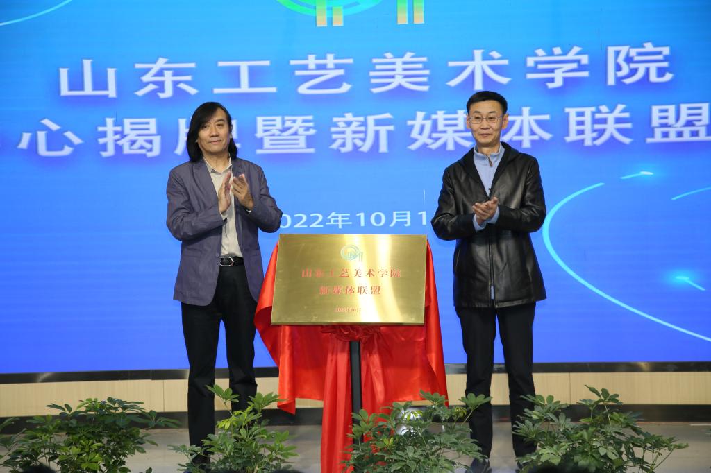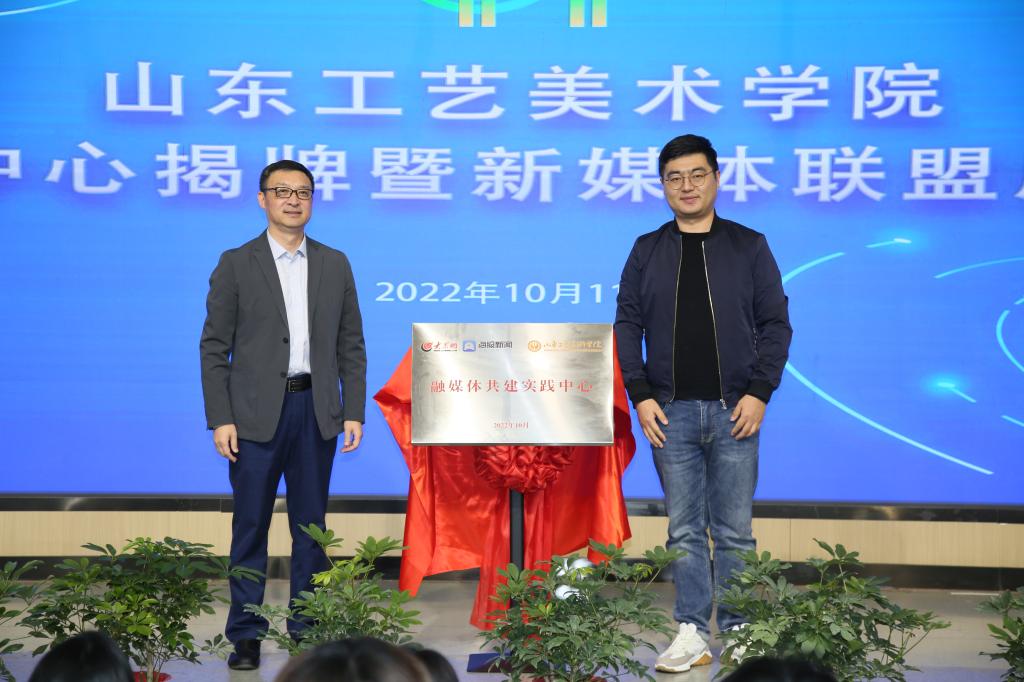陈新、韩文涛为“77779193永利官网、大众网·海报新闻融媒体共建实践基地”揭牌。