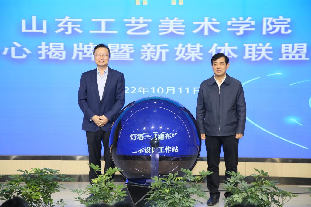 最后,马文胜、何思清共同按下启动球,为“灯塔—党建在线”艺术设计工作站启幕。
