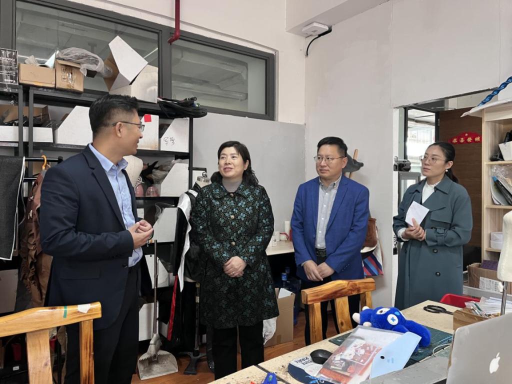 在文化创意产业“金种子”孵化器,张艳霞听取了孵化器空间使用、企业入驻及工作开展情况的介绍。期间,张艳霞深入入驻企业,与企业负责人和实习学生进行了交流,详细了解了企业生产经营、项目研发与学校专业对接以及学生实习实践情况。她指出,孵化器入驻企业要充分利用好学校的资源优势,以实际项目历练学生团队,充分尊重学生的设计成果,加强不同专业学生的交叉协作,锻炼学生的实践能力。