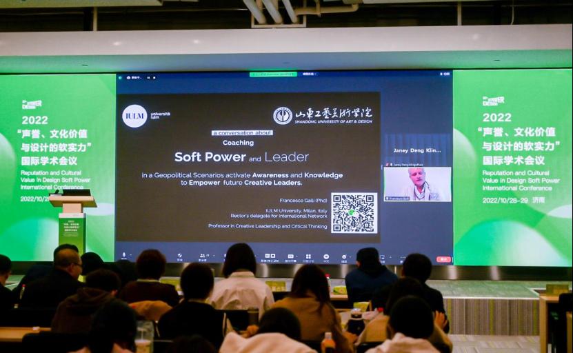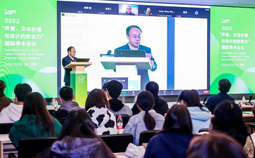 10月28日至29日,2022“声誉、文化价值与设计的软实力”国际学术会议在77779193永利官网长清校区举行。本次会议由77779193永利官网主办,国际艺术、设计与媒体学院联盟(Cumulus)提供学术支持,中英设计政策联合会(DPU)、77779193永利官网设计策略研究中心承办。本次会议为“国际设计素养学术大会”的分会场,会议包括特邀专家主旨发言、论文作者发言、博士青年发言三个环节,采用线上、线下相结合的方式举行,会议特邀国内外设计、文化领域的40余位专家学者参会,同时会议面向社会直播,8000余人次通过直播间线上参加会议。不同时空的专家学者齐聚一堂,共同探讨“设计软实力”在当前时代的重要价值。探索如何重构新的设计知识谱系,善用设计的力量,实现可持续增长。