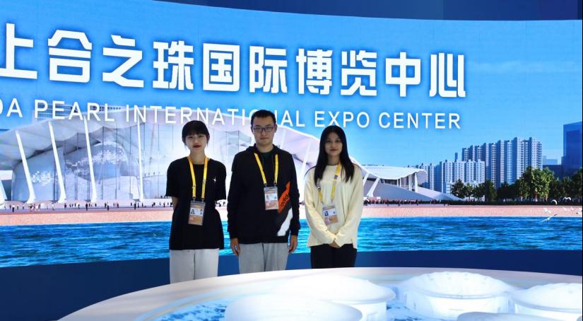 自接到任务后,在学校团委、文化创意产业管委会、建筑与景观设计学院、服装学院等部门配合下,由2020级、2021级的6名同学第一时间组成“进博会志愿者讲解团”,对此次进博会举办背景、设计理念、作品简介等相关内容进行熟悉与研究,在讲解方向、话术、语气、仪容仪态等方面进行反复训练。11月初,讲解团赴上海进博会进行现场展示并得到商务厅认可,通过对进博会山东成就展7天的介绍学习,讲解团从陌生到熟练讲解山东发展成就,有了长足的进步。进博会既是山东省在国际舞台的展示窗口,又是学校积极搭建实践育人平台的具体体现,是学校汇聚校内外实践资源,推进实践育人平台建设,提升实践育人水平的关键一步。