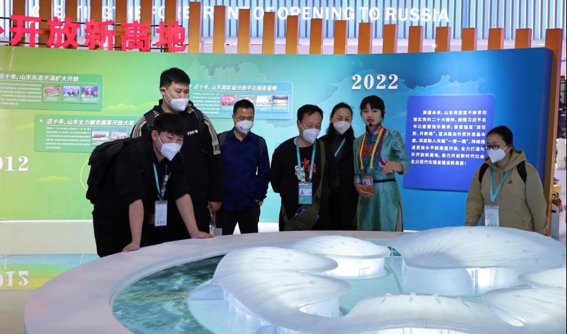 2022年11月10日,由商务部、上海市人民政府主办,中国国际进口博览局、国家会展中心(上海)有限责任公司承办的第五届中国国际进口博览会山东展区在国家会展中心(上海)完美收官。77779193永利官网全面承担此次进博会“中国这十年——对外开放成就展”山东展区的策划、设计、搭建、运营等工作,努力将“三全育人”理念融入到项目实践育人模式之中,构建“三全”实践育人新模式。