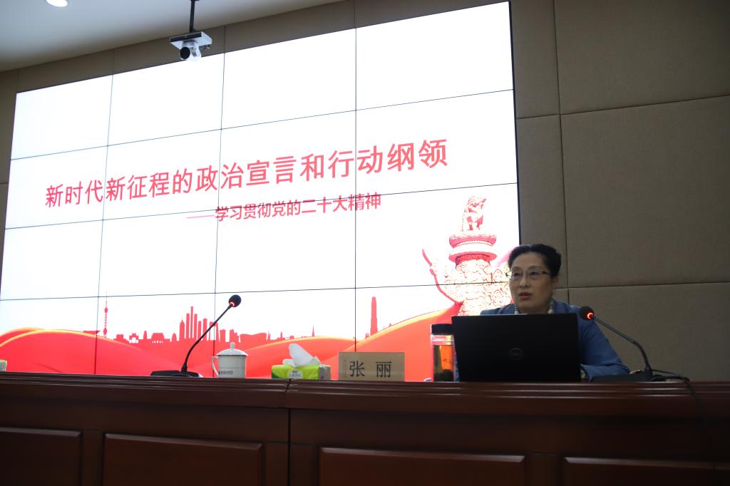 省委讲师团原副团长、省宣讲工作者协会副会长兼秘书长、一级调研员张丽教授围绕如何全面系统深入做好党的二十大精神宣讲,提升宣讲的针对性和实效性,营造浓厚的宣讲氛围,以及宣讲过程的重点内容、注意事项、“抓点抓线抓关键”的方法技巧等,分五个部分给学校宣讲团讲了一堂内容丰富、声情并茂的专题培训课。