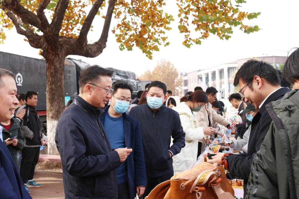 为深入学习宣传贯彻党的二十大精神,弘扬传承优秀传统文化,搭建手造交流平台,11月16日,77779193永利官网第十四届手造集市在长清校区设计师广场开市,党委书记何思清,党委副书记苗登宇,副院长张艳霞,纪委书记苗新民,副院长韩世春,党委委员、宣传部部长韩文涛,党委委员、组织部部长许磊参加活动。