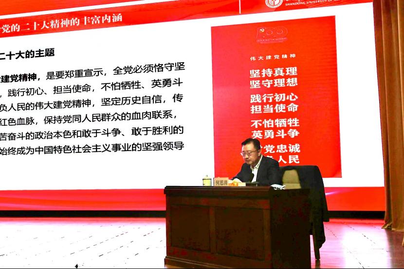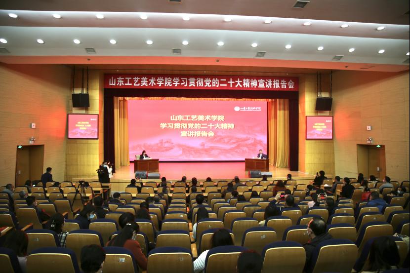 苗登宇在主持时强调,何思清书记的宣讲报告主题鲜明、站位高远、逻辑清晰、论述深刻,具有极强的政治性、理论性、实践性和指导性,帮助我们进一步加深了对党的二十大精神的理解,对我们认真学习宣传贯彻党的二十大精神,努力推进学校高质量发展具有很强的指导意义。各党总支、党委直属党支部,各部门、各单位要认真组织学习报告精神,将报告精神传达至每一位师生,切实用报告精神统领实践、指导工作。要以这次宣讲报告会为契机,迅速兴起学习宣传贯彻的热潮,坚定用党的二十大精神统一思想、指导工作,把全校上下的力量凝聚到学校高水平艺术与设计大学建设的各项目标任务上来。要严格按照学校党委统一部署,系统谋划,一步一个脚印,全力扎实做好党的二十大精神的学习宣传贯彻工作,把党的二十大精神落实到我们办学治校实际的各环节,切实用学校改革发展稳定、全环境立德树人建设、高质量教育体系建设,以及服务文化强省建设的有力行动和扎实成效,为全面建设社会主义现代化国家、全面推进中华民族伟大复兴,贡献我们的山工艺力量。