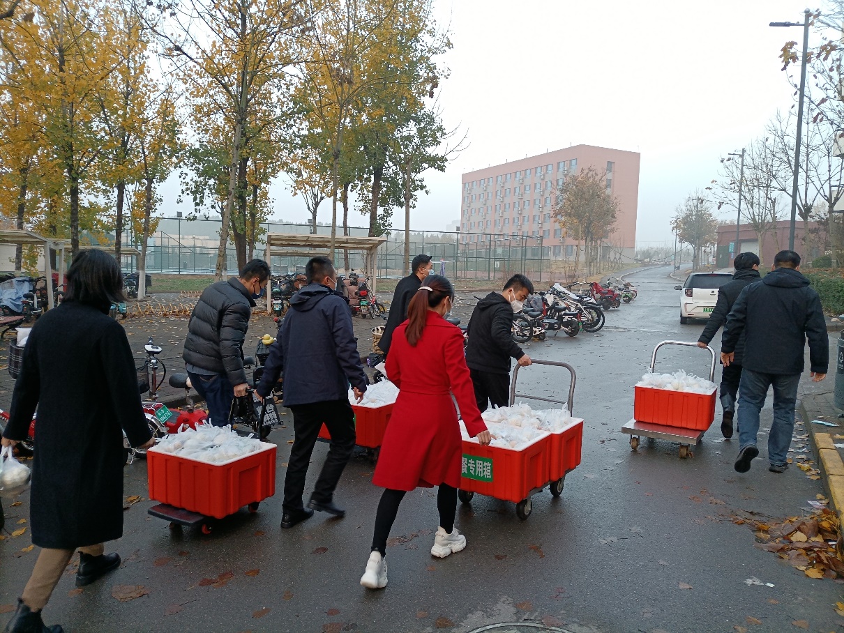 “有一份心就尽一份力,有一份热就发一份光。”教工管理组组织160余名在校教工,就地“转岗”志愿者。核酸检测、联防联控、物资配送、配餐送餐……他们默默付出,同心协力,用自己的责任、奉献、担当、爱心,架起一座全民防疫“连心桥”。