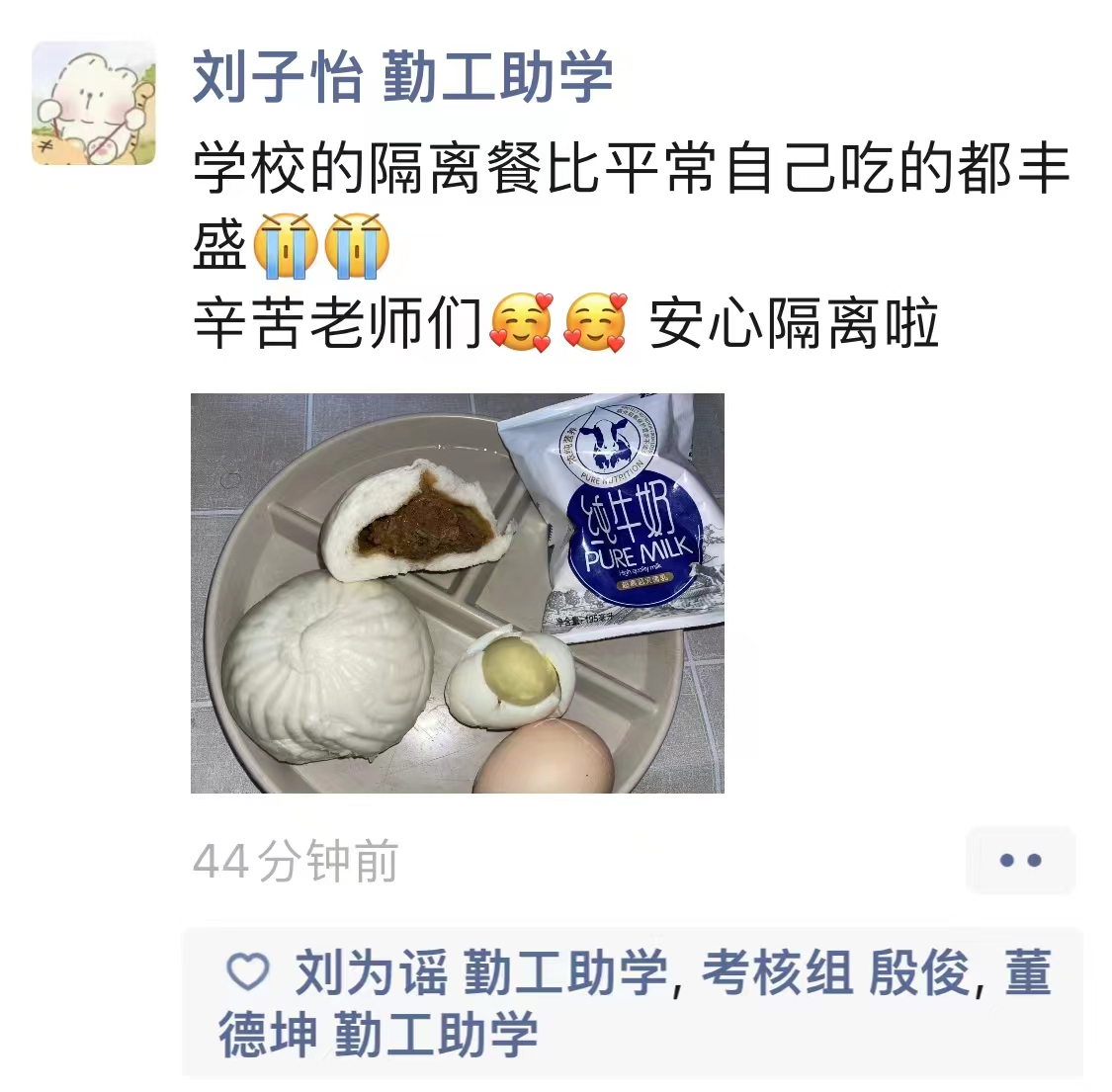 “学校的隔离餐比平常自己吃得都丰盛!”