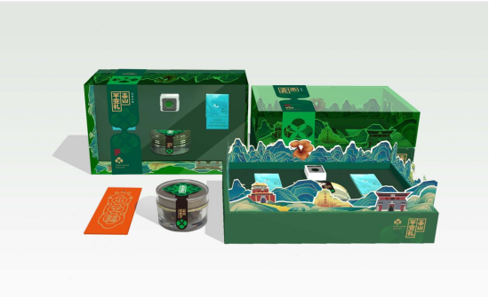 “泰山平安礼”城市伴手礼包装设计系泰安文旅集团推出的“泰山有礼”文创产品,产品为泰山“四大名药”(何首乌、四叶参、黄精、紫草),诠释“国山福地、物华天宝”泰山内涵,祝愿国泰民安、吉祥如意。其中“泰山玉”、“泰山四大名药”是“平安泰山”旅游商品的典型代表,包装设计师生团队作品通过深入分析产品区域属性及文化内涵,通过新材料、新工艺的创新设计与制作,呈献“泰山安则四海安”、“登泰山保平安”美好祝福。