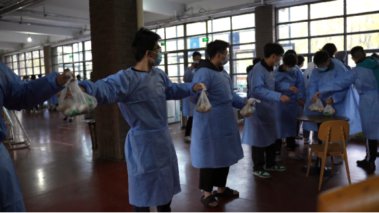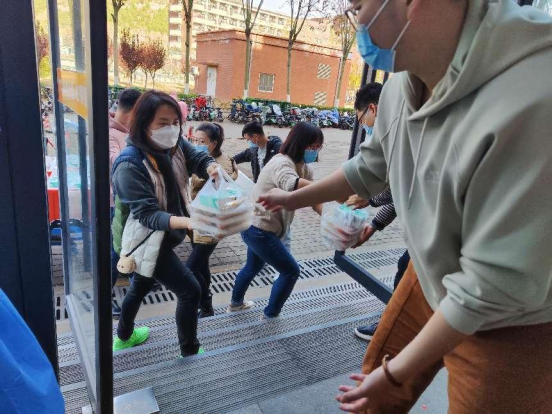 他们,是坚实可靠的“支援保障”。由学校领导、机关干部、专业教师、一线职工组成的160余名教工“送餐志愿者”工作组,分工合作,有条不紊,精准覆盖到每一座楼寓,为学生生活用餐保驾护航。