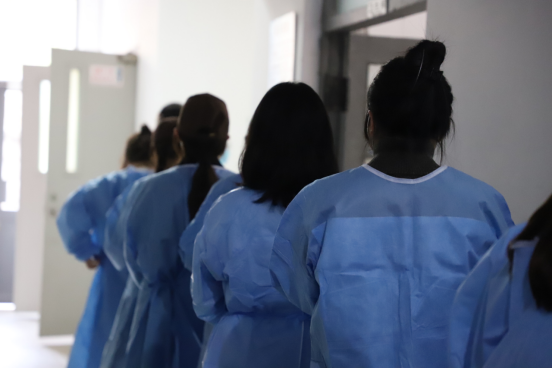 他们,是坚守“疫”线的“坚定守护者”。8名医务工作者,每天采集全校核酸样本7000余份,超负荷的工作量并没有吓倒他们,我们从他们淡定的眼神中看到的,是勇敢,是坚毅,是无惧风雨的责任担当。