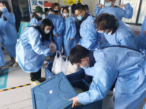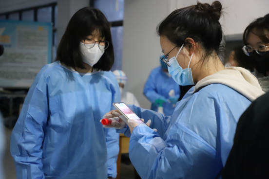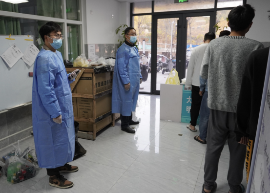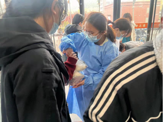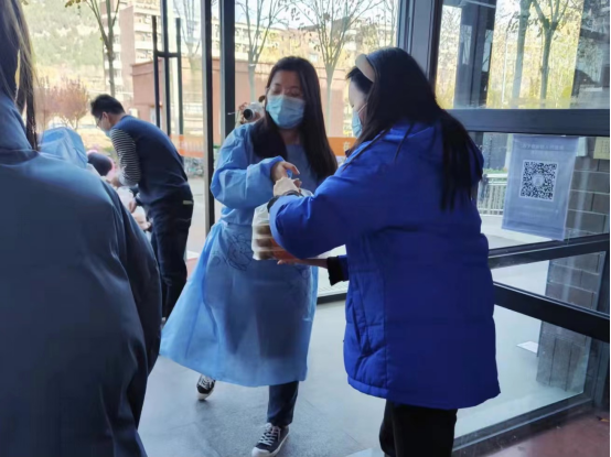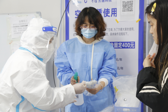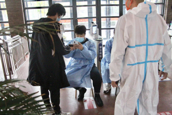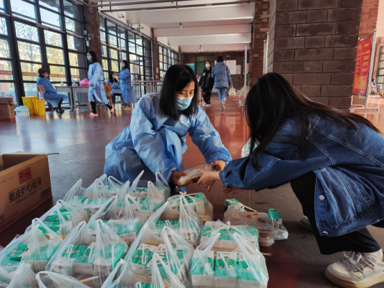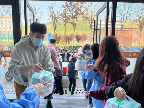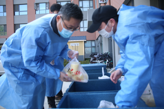 公寓楼宇内的学工队伍切实保障学生一日三餐发放,垃圾清理,有序组织学生按楼层按宿舍进行检测,确保过程高效有序安全。他们时刻关注、准确掌握每一名学生的思想动态、健康状况、个人诉求、心理情况,全力做到“基础信息全摸清、动态信息全掌握、关注学生全覆盖”。