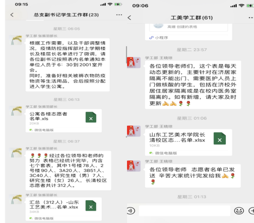 会议结束时已是凌晨1:30,学生工作部(处)组织确定了入驻公寓的7名楼长、20名楼层长的教工志愿者的名单,明确了学生教育疏导、进驻公寓宿舍、防疫物资、学生每日三餐发放等工作职责。学工队伍立即开展线上联络,进行数据摸排,及时汇总上报学生在校在寝情况,迅速招募学生志愿者,各项工作有条不紊进行。