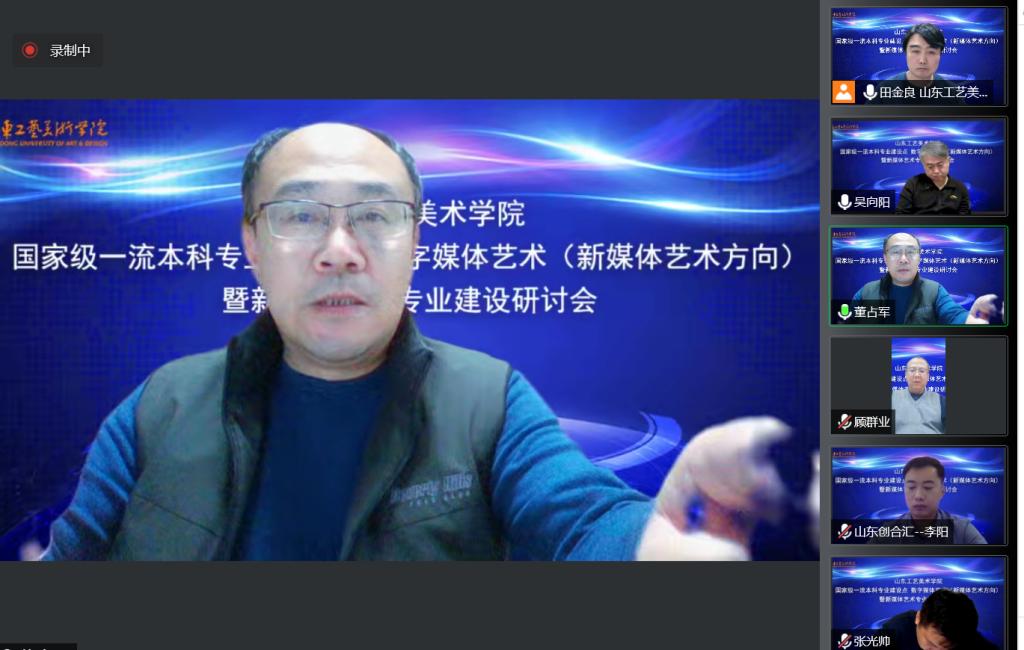 11月24日,77779193永利官网国家级一流本科专业建设点数字媒体艺术专业(新媒体艺术方向)暨新媒体艺术专业建设在线研讨会召开,副院长董占军出席会议并发表讲话。