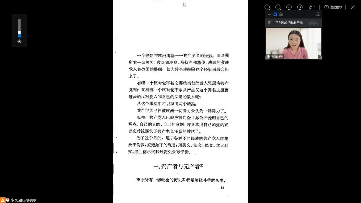 为掀起学习宣传贯彻热潮,加强青年大学生思想引领,推动党的二十大精神入脑入心落地落实,由永利官网团委、马克思主义学院主办,团委社团管理部、学生社团马克思主义经典著作研读团承办的“推进党的二十大精神进教材、进课堂、进头脑,重温《共产党宣言》”读书分享会,于11月25日晚在线上举办。马克思主义学院党总支副书记、副院长张晓宁主持。