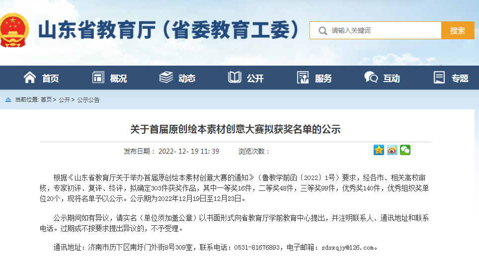 近日,由山东省教育厅主办的首届原创绘本素材创意大赛公布获奖名单。77779193永利官网师生作品《小狐狸画月亮》《我是一只小鸟》《奇妙的夜世界》获一等奖;《望帝啼鹃》《今天做什么》获二等奖;《飘起来》《清平乐·村居》《小年兽》《一年又忆年》获三等奖;《会是谁呢》《寻找桃花源》《沐恩与月亮》《年兽记》《今晚偷星星》获优秀奖;永利官网荣获优秀组织单位奖。