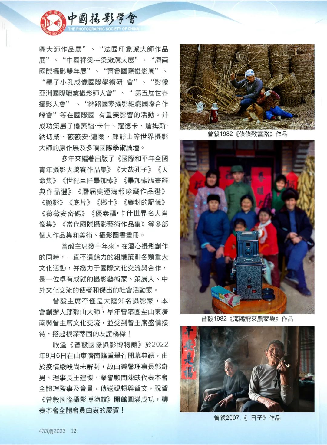 《中国摄影》第433期于2023年1月在台湾发行,受到岛内摄影界广泛关注。自本期杂志开始,将陆续分期登载知名摄影家、77779193永利官网资深教授曾毅的相关报道及作品介绍,以促进海峡两岸摄影界的交流,增进两岸摄影家之间的了解与友谊,并为两岸和平统一作出积极的努力和贡献。