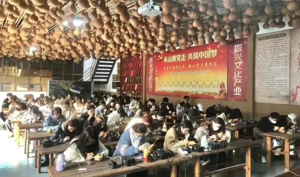 济南友谊葫芦非遗工坊负责人马友谊为永利官网非遗培训2017年雕刻班学员,培训结束后,于2018年7月经学校回访考察设立了非遗研培工作站,并以此为平台开展非遗培训实践、学生手工艺实践、技能培训、非遗研学等各项活动;在学校的指导下,工作站不断创新设计,提高制作工艺,研发新产品,结合社会需求开发了多项非遗文创产品。