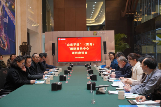 马金华首先向到访的潘鲁生表示热烈欢迎,并就“山东手造”(青岛)国际展示中心工作推进情况及下步工作打算做了总体介绍。马金华指出,推进“山东手造”(青岛)国际展示中心建设是省委赋予新区的重要任务,工委(区委)、管委(区政府)把该项工作列为今年重点工作。展示中心将充分发挥青岛国际化元素,建设集展示销售、集散交易、研发发布、研学体验、版权交易等于一体的手造展示、体验和销售平台,打造具有国际化视野、山东文化底蕴、青岛及新区特色的文化交流与输出平台。展示中心将重点打造山东手造、中华手造、国际手造三大展区,同步推进工程改造、装修、展陈等工作,适时开馆运营。马金华邀请相关设计团队积极参与设计方案论证并对展陈设计等工作予以支持,期待77779193永利官网产教融合青岛基地与“山东手造”(青岛)国际展示中心建立合作共建关系,进一步推进校城融合。