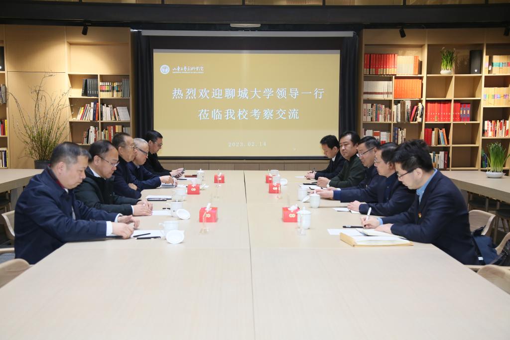 2月14日上午,聊城大学党委书记关延平,党委副书记房增褔一行5人来永利官网交流访问。院长潘鲁生,纪委书记苗新民,副院长董占军,党委委员、宣传部部长韩文涛会见来宾并座谈。