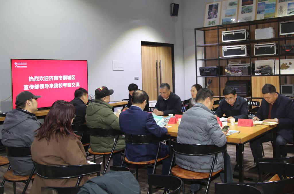 数字艺术与传媒学院院长吴向阳介绍了学院专业与成果,希望能够结合钢城区的实际需求,利用学院实践教学特色及专业特点,在影视创作制作、纪录片短视频创作、影视动画创作等方面加强务实落地的合作,共同打造地域文化精品和传播新形态,共同搭建实验教学、产教融合平台,创造更多的学生实践机会,将传统文化要素带进课堂,激发学生对传统艺术的兴趣。
