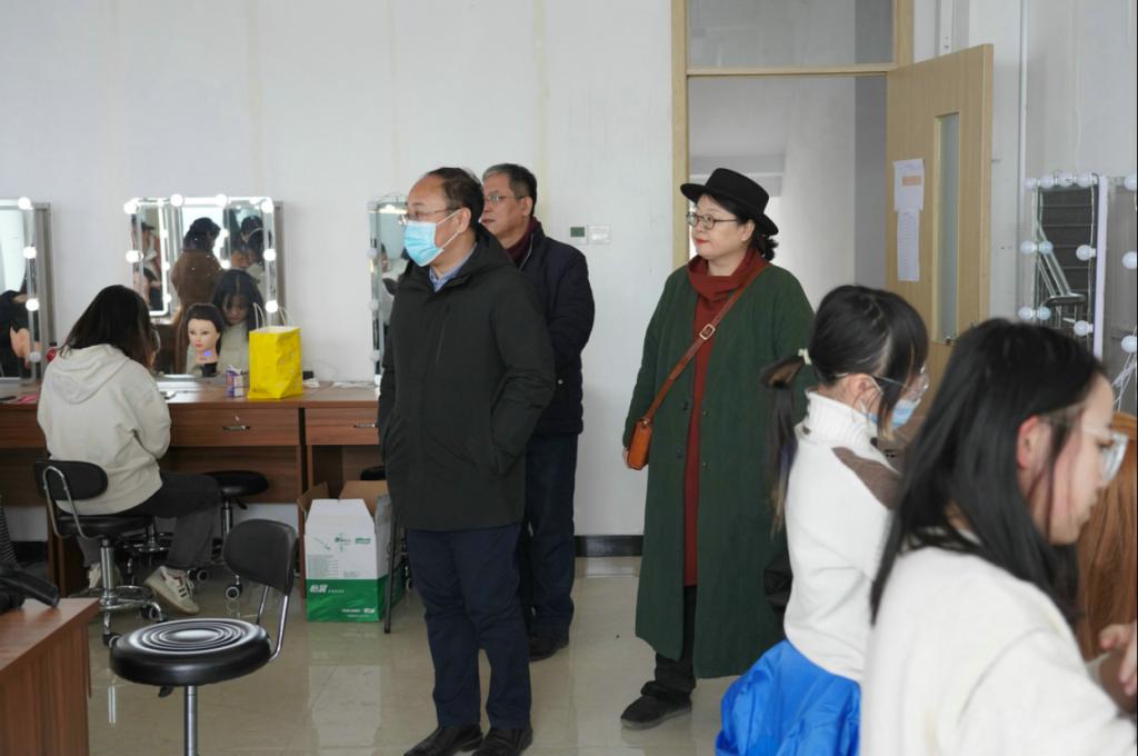董占军实地查看了青岛基地的教学环境和教学设施,到妆扮专业教室深入了解学生实际上课情况,他表示,青岛基地新学期的教学工作整体顺畅有序,要不断加强管理,提高教育教学质量。