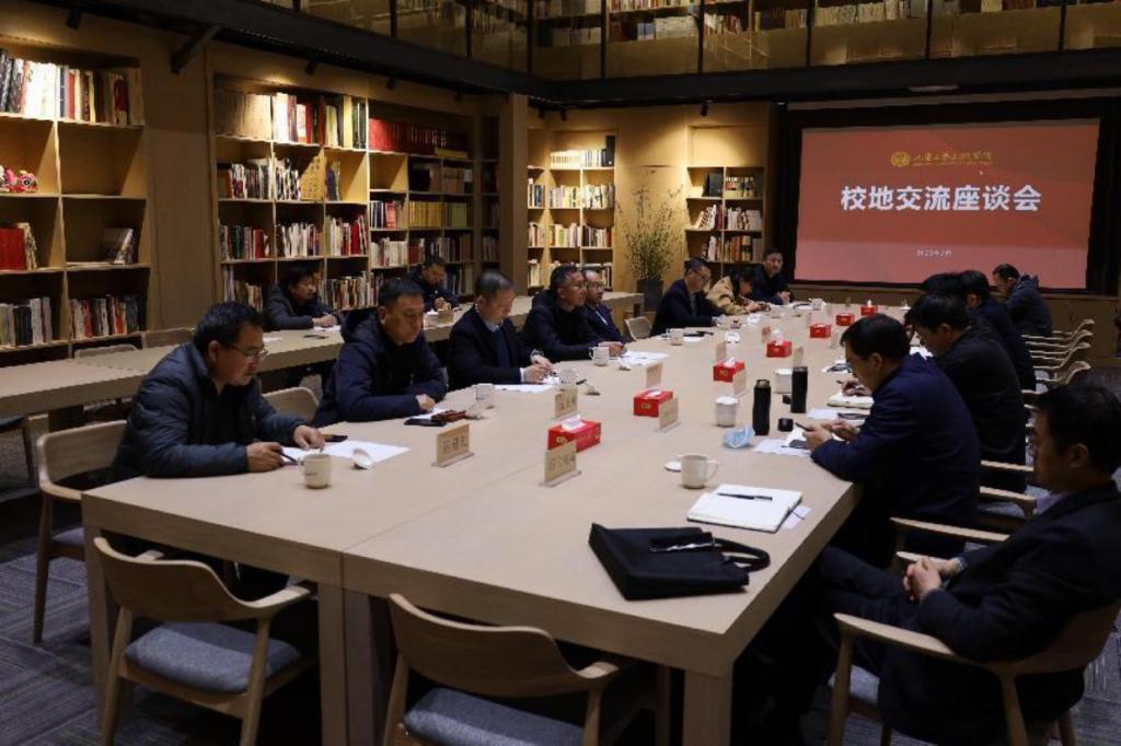 座谈会上,董占军介绍了学校的办学理念、办学特色、学科建设、人才培养、社会服务等情况,并对区政府近年来对学校发展给予的大力支持表示感谢,随后相关业务部门就具体工作进行了交流。