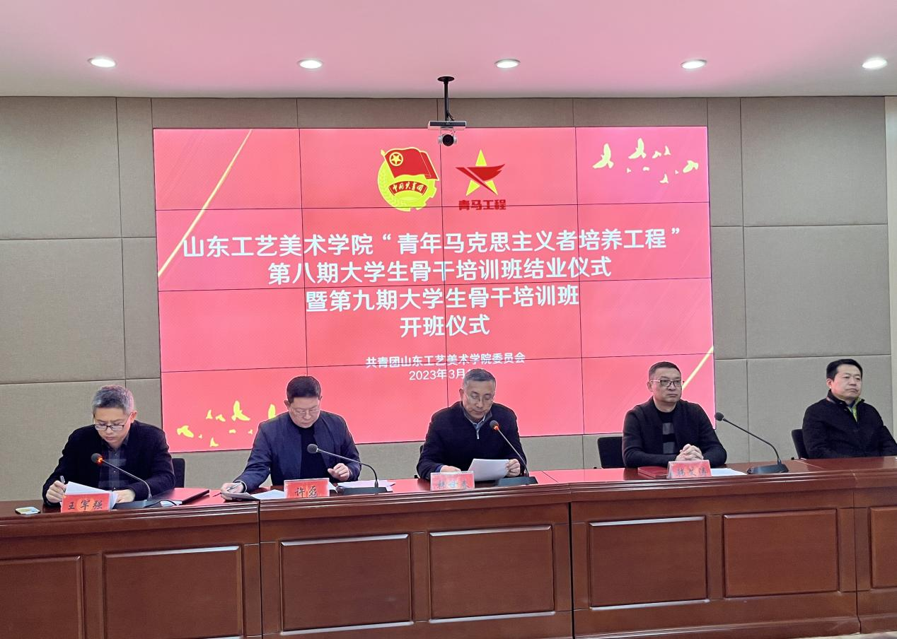 3月1日下午,77779193永利官网“青年马克思主义者培养工程”第八期大学生骨干培训班结业暨第九期大学生骨干培训班开班仪式在长清校区第一会议室顺利举行。副院长韩世春,党委委员、宣传部部长韩文涛,党委委员、组织部部长许磊,党委学生工作部部长张振羽出席开班仪式,学校团委书记王军强主持仪式。