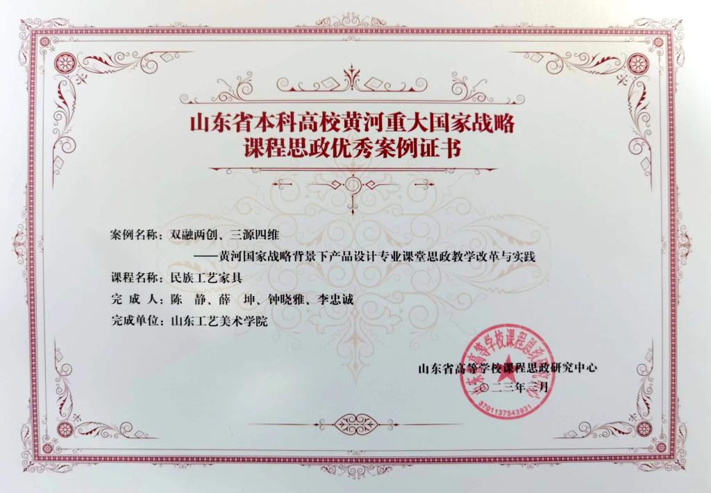 近日,山东省高等学校课程思政研究中心公布了《山东省本科高校黄河重大国家战略课程思政优秀案例》名单,永利官网《双融两创、三源四维:黄河国家战略背景下产品设计专业课堂思政教学改革与实践》等共计4项案例入选。