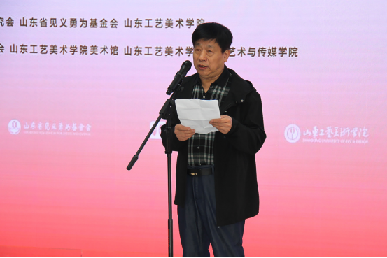 陈光代表山东省见义勇为基金会对本次展览的举行表示热烈的祝贺,对前来参加开幕式的各位朋友表示热烈的欢迎和衷心的感谢。他指出,近年来,山东省各级见义勇为基金会通过广泛地社会宣传和大力表彰见义勇为优秀分子、先进群体,来达到弘扬中华民族见义勇为传统美德的目的,并起到了重要的积极的作用。去年,山东省见义勇为基金会与中国新闻漫画研究会、山东省漫画家协会联合举办了全国见义勇为漫画大赛,我们有幸看到全国31个省、市、自治区包括偏远的西藏自治区都有作者踊跃应征参赛。这让我们深深地体会到用文学、艺术的形式来宣传见义勇为的思想,会起到更好的作用。也使我们更加深刻地认识到文学、艺术的重要特点是形象大于思想,于无声处听到的经历给人的力量会更加强大!