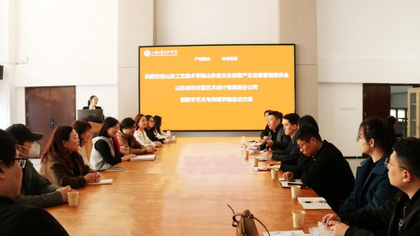 阳春三月,万物复苏,为推进学校校企合作与产教融合事业发展,服务学校各教学单位教学科研工作,促进教育与产业的双向供应,助力学校师生科研与实践能力提升。3月14日,学校山东省文化创意产业发展管理委员会邀请山东轨道交通勘察设计院有限公司执行董事、副总经理(主持工作)、山东城市交通艺术设计有限责任公司董事长韩刚一行13人先后赴视觉传达设计学院、建筑与景观设计学院、工业设计学院、造型艺术学院、现代手工艺术学院、数字艺术与传媒学院等教学单位走访交流并展开座谈。