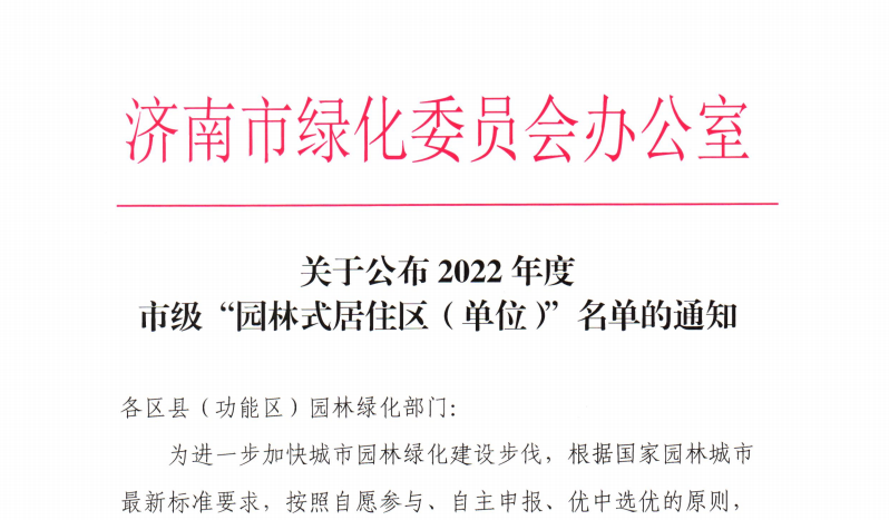近日,济南市绿化委员会办公室公布了2022年度市级“园林式居住区(单位)”名单,永利官网成为获此殊荣的唯一一所长清区高校,这是永利官网继获评“绿色校园”之后在校园环境建设方面的又一次佳绩。