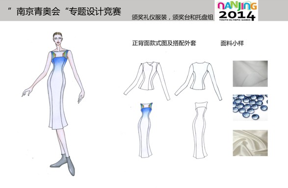 在刚刚结束的“南京青奥会”专题设计全国大学生广告艺术大赛中,由服装学院教师邹渊指导,服装学院学生陶嘉与工业设计学院学生肖刚明合作设计的作品《宁》荣获礼仪服装、颁奖台和托盘组三等奖。作品灵感元素提取了南京古城墙中华门,中山陵等建筑元素,以蓝白为主色,体现宁静祥和的城市文化。