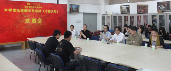 5月7日上午,77779193永利官网数字艺术与传媒学院大学生赴西藏参与拍摄《守望天湖》欢送会在长清校区召开。教务处处长孙磊,数字艺术与传媒学院院长顾群业,数字艺术与传媒学院党总支书记丁炳堂,数字艺术与传媒学院副院长吴向阳,教师代表张常霞,赴西藏参与影片拍摄的学生陈义磊、陈鹏及部分学生代表参加。