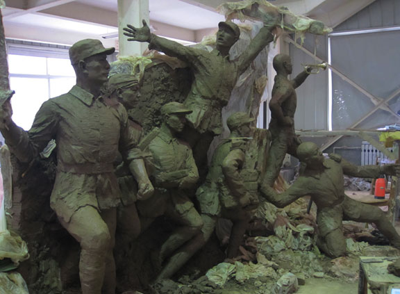 苗登宇副院长一行还从雕塑作品的人物造型、服饰、神态、布局关系及材料运用等方面进行了详细指导,提出了具体的修改意见。