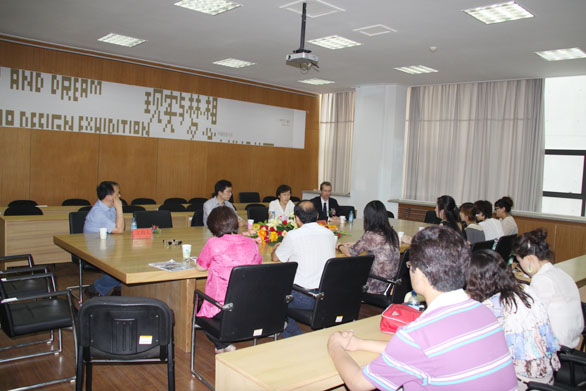 视觉传达设计学院院长石增泉、党总支书记张军波、副院长侯立平以及专业教师代表参加了交流会。