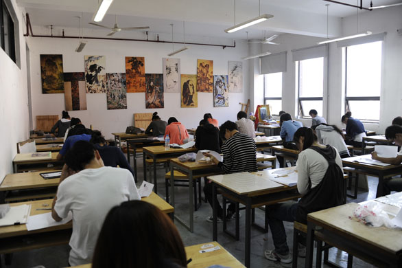 2011级新生入学测试内容主要包括文化课测试和专业素描两部分,文化课测试包括外语和语文两个科目,除沿用了往年的基础知识题型外,适当增加了语言表达等新内容,不仅增加了试题的灵活性,还能较好地考察学生的思维和逻辑表达能力。此次入学测试共设立80个考场,考试学生范围涉及全校美术、设计、书法、表演、史论、理科类1953名本专科新生。