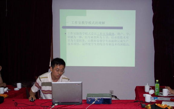 董占军处长做总结性发言。董处长首先肯定了老师们工作室教学的成绩,简单介绍学校近期的教学活动,并表示对于工作室教学在硬件上会大力支持。同时,提出工作室教学要处理好工作室与教学计划、教研室、企业三方面的关系,培养应用性人才,教学单位要形成教学团队,教师要不断学习才行。