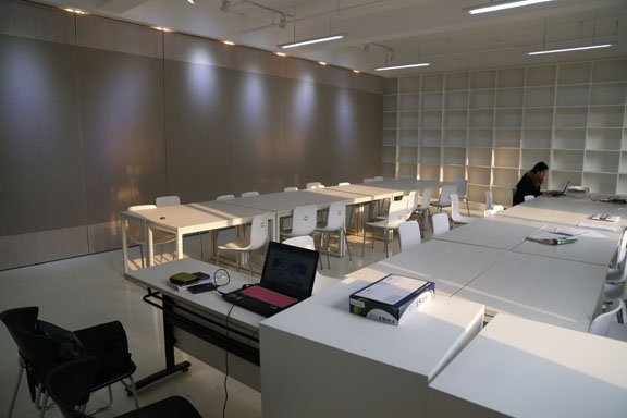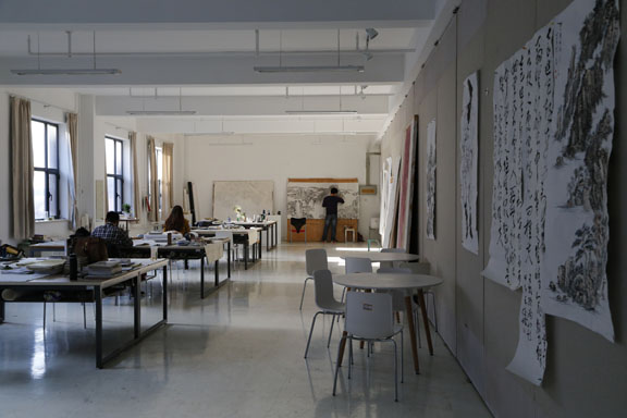 考虑到研究生学习的特殊性,为更好地服务于研究生群体,实现教学与科研相结合,研究生处前期经过广泛调研、多方论证、规划和调整设计方案,最终经学校招标完成主体空间改造工程,相关配套桌椅等设施也已基本到位。目前共建成11个工作室,供中国画、油画、书法、雕塑、视觉传达设计、环境艺术设计以及理论类等学科方向研究生使用,工作室配备专业图书资料、无线局域网络,集设计创作与作品展示于一体。
