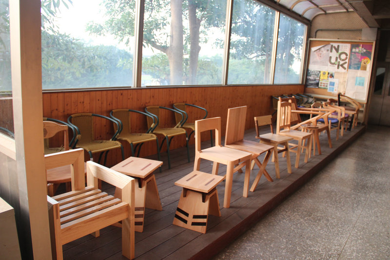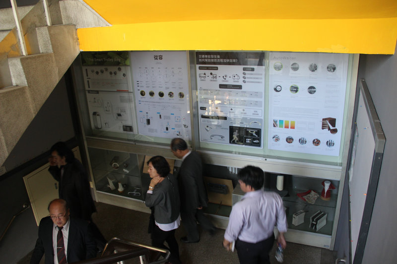 其三,灵活多样的设计展示。教学成果的多样展示,首先取决于教学单位日常对教学成果的点滴积累与充分收集,这一点,在对上述三所高校的参访中,体会也比较深刻。以云林科技大学为例:参访过程中,恰逢其设计学院工业设计系举办“在地扎根,放眼国际”——国际设计竞赛获奖成果记者会。获得设计大奖的学生集中为师生汇报获奖作品,类似活动能够有效得激发同学的学习意愿与参赛热情,也很好地展示了该专业的办学水平。其它两所大学也灵活运用工作室、廊道、展厅、小橱窗等区域,见缝插针的展示所属专业师生的获奖证书、设计作品与课程作业,起到了很好的宣传示范作用。