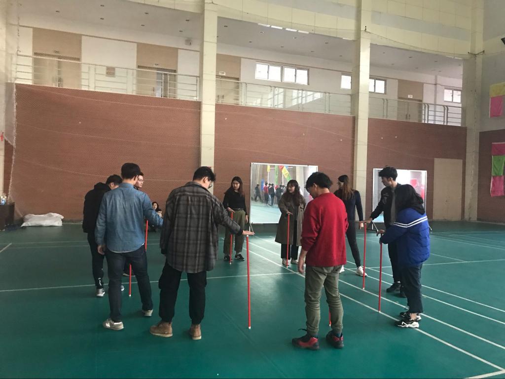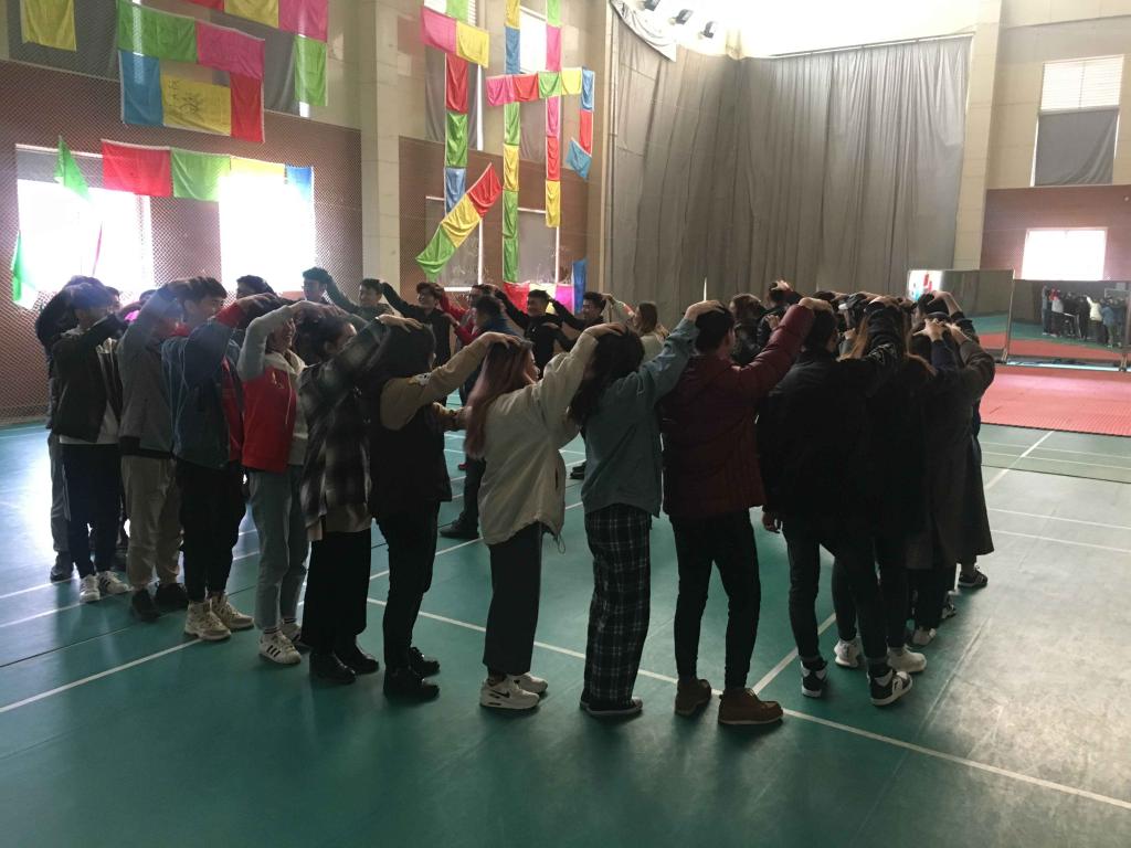 此次素质拓展活动在破冰游戏中开始,三十余名同学自主分成了三个队伍,每支队伍自行设计了队名、口号和队歌,并投票选出了各自的领导者。先后开展并顺利完成了“进化论”“超音速”“极速60秒” “挑战150”四项游戏。