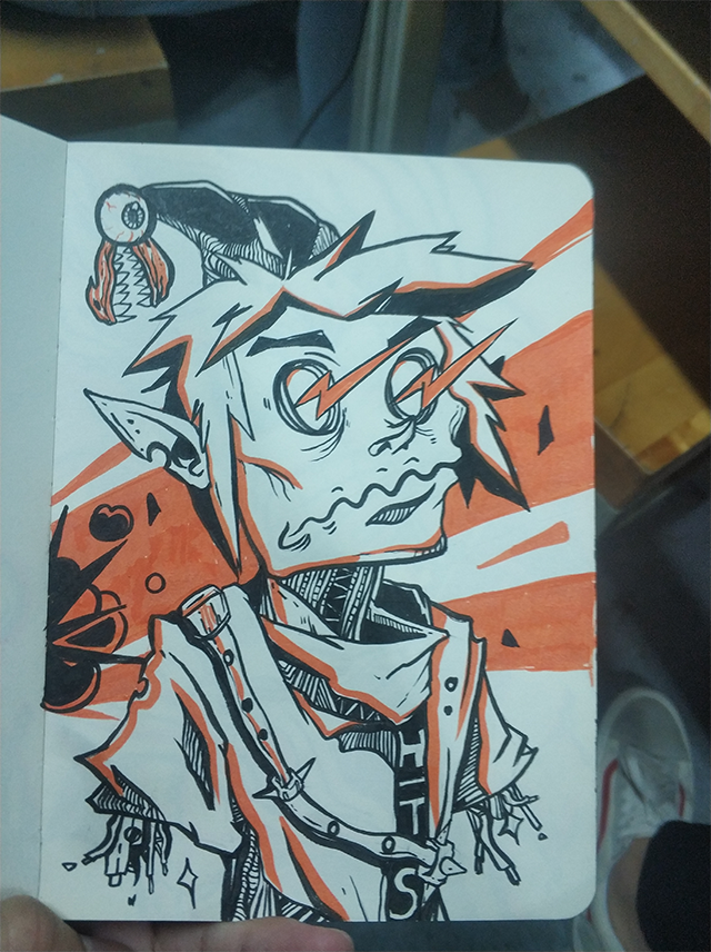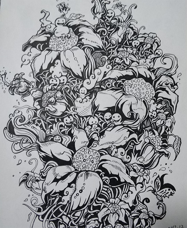 2017级视觉传达六班的季轩乾同学被一致推选为本班的速写手记本活动先进个人,他与同学们分享了自己手记本中最满意的作品,他说,这是他去年冬天在食堂吃饭时,受食堂门口贴着一组插画海报的启发起稿创作的。