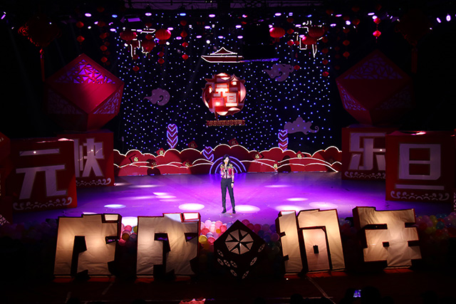 此次迎新元旦晚会,不光是节目类型多样,还在其间穿插了“你画我猜”的游戏互动环节。此次晚会是一次师生同乐的盛会,晚会特别邀请了辅导员陈瑶老师献歌一首,为同学们助阵。